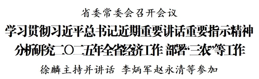 12月20日,省委常委会召开会议,深入学习贯彻习近平总书记在中央经济工作会议上的重要讲话精神,学习贯彻习近平总书记对“三农”工作作出的重要指示精神和中央农村工作会议精神,听取省政府党组关于今年全省经济运行情况和明年经济工作建议的汇报,部署年轻干部教育管理监督等工作。