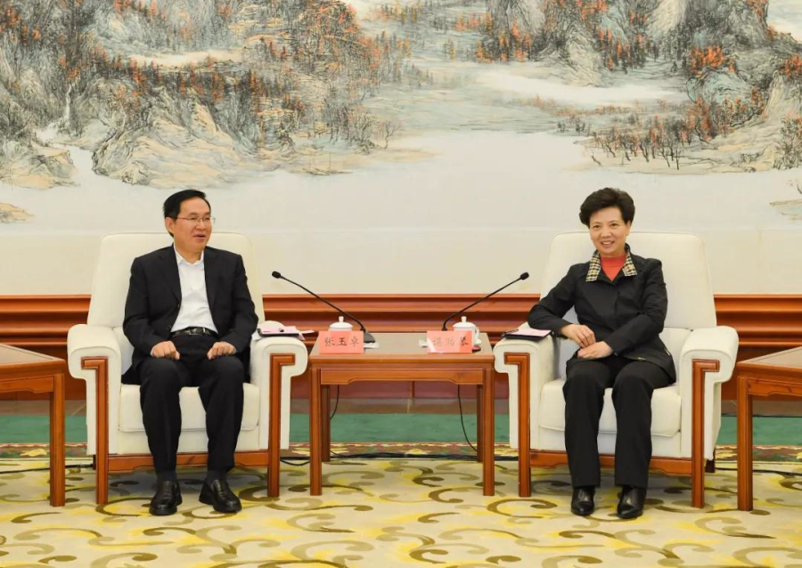 省委书记谌贻琴会见中国工程院院士、中国石油化工集团有限公司董事长张玉卓。贾智 摄