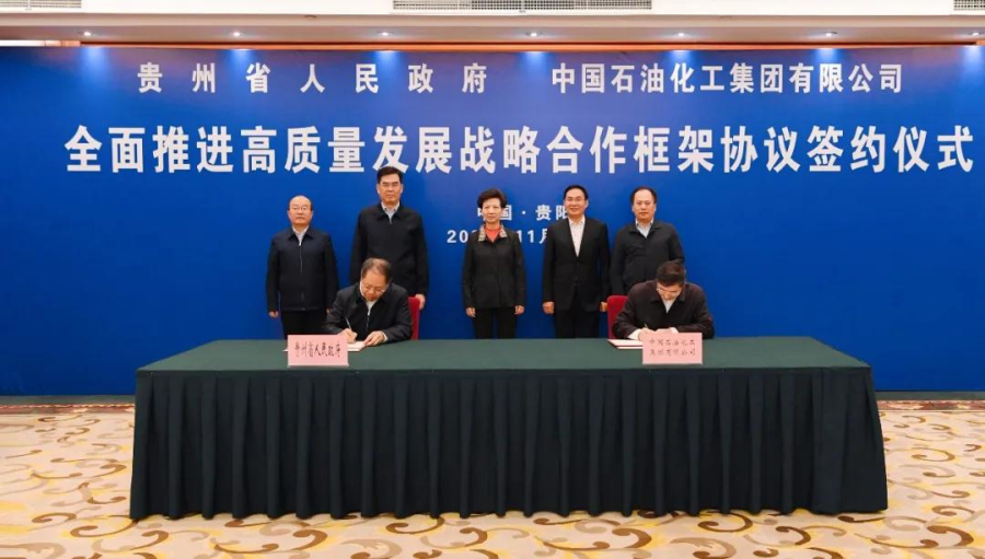 报告会前,举行了省政府与中国石化集团公司全面推进高质量发展战略合作框架协议签约仪式。根据协议,双方将在毕节循环经济新区新型能源化工基地“煤电化一体化”产业项目建设、油气地热资源勘探开发、油气销售网络和通道建设以及支持中国石化集团公司在贵州的项目建设和业务发展等领域开展务实合作,并建立项目建设领导协调机制。