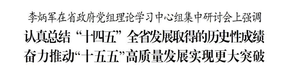 11月19日,省长、省政府党组书记李炳军主持召开省政府党组理论学习中心组集中研讨会。他强调,要进一步学习贯彻党的二十届四中全会精神,认真总结“十四五”全省发展取得的历史性成绩,奋力推动“十五五”高质量发展实现更大突破。省政府党组成员、副省长作发言或书面发言。