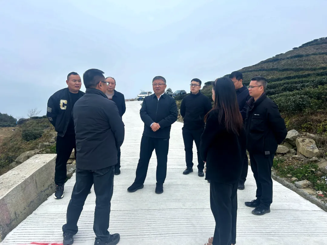 图为邹康在新屯街道坪湘村调研紫茶产业发展情况