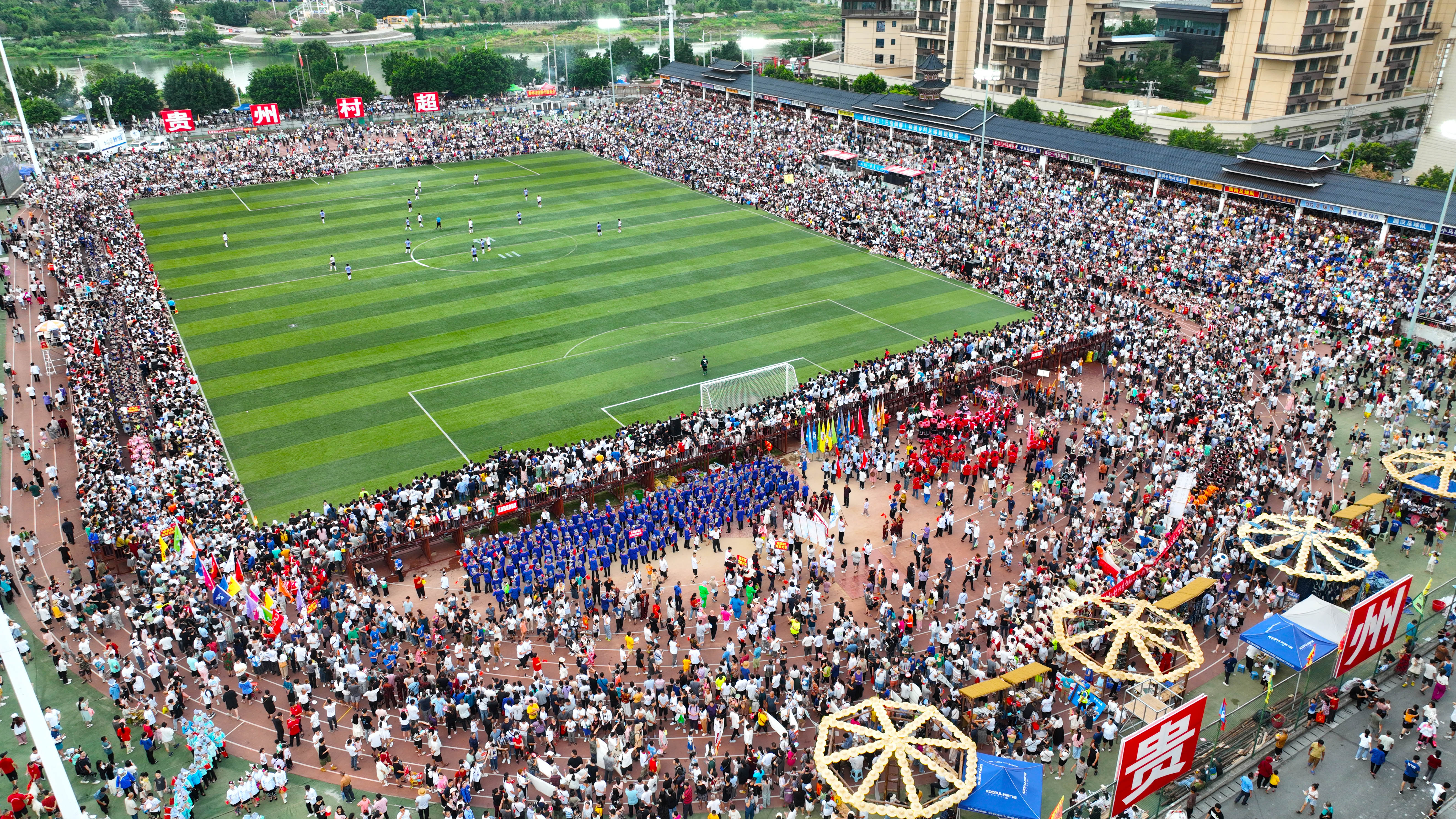 6月17日,航拍的贵州“村超”现场。韦贵金 摄
