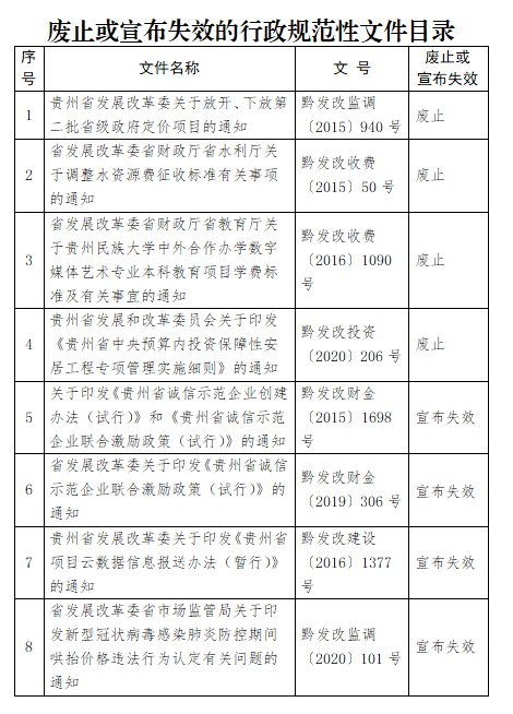 附件:省发展改革委关于废止或者宣布失效部分行政规范性文件的公告