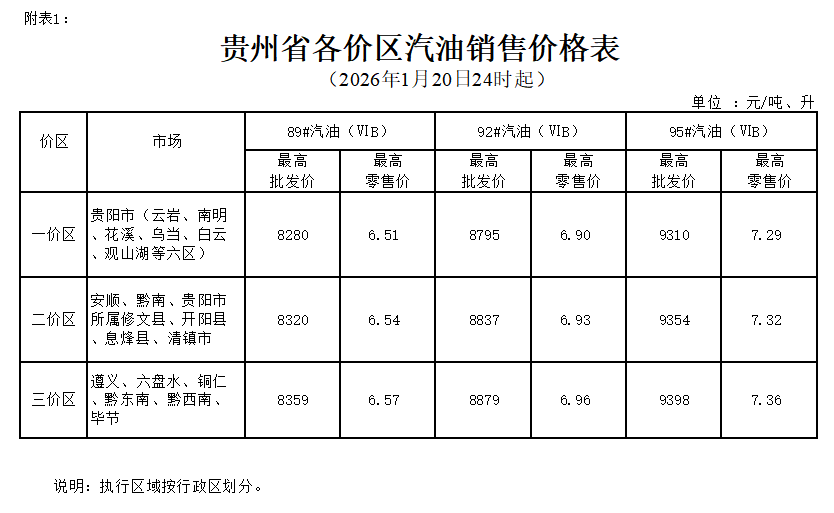 附件:1.贵州省各价区汽油销售价格表