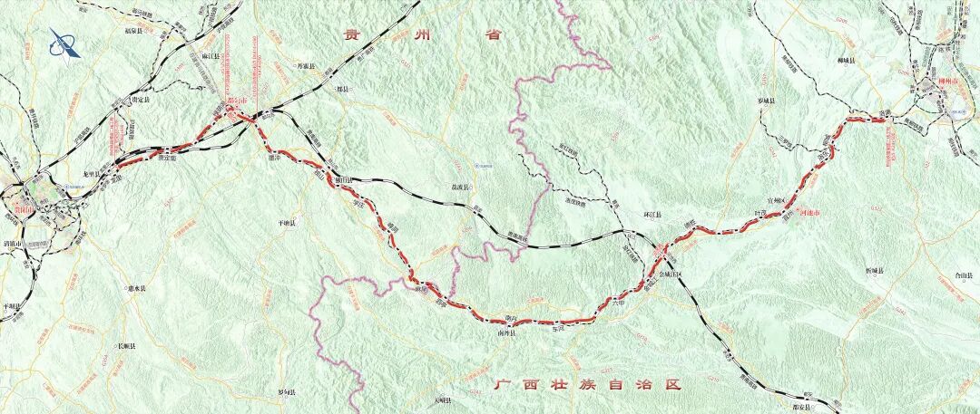 图为黔桂铁路增建二线工程线路方案平面示意图