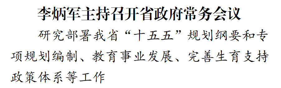 12月3日,省委副书记、省长李炳军主持召开省政府常务会议,研究部署我省“十五五”规划纲要和专项规划编制、教育事业发展、完善生育支持政策体系等工作。