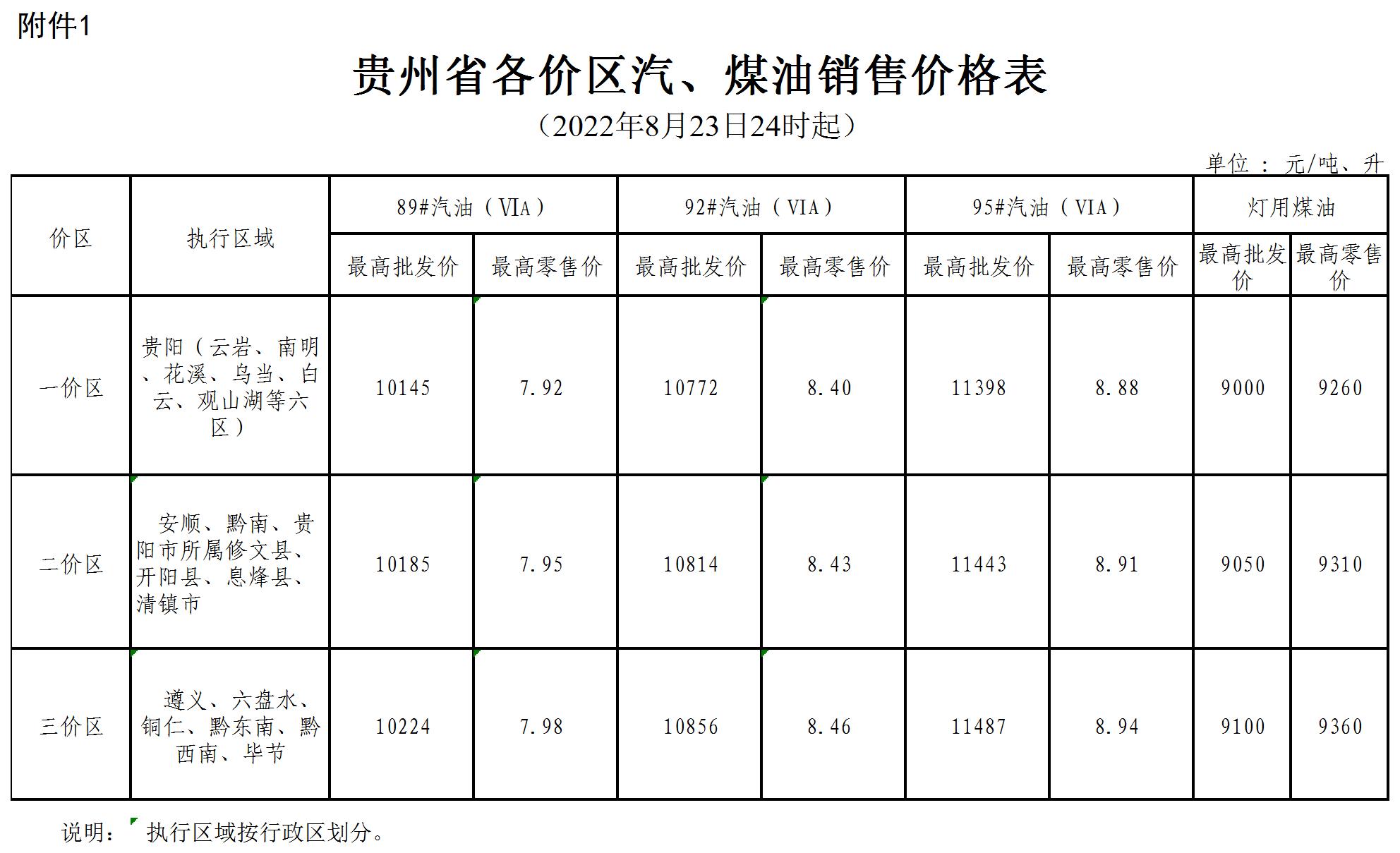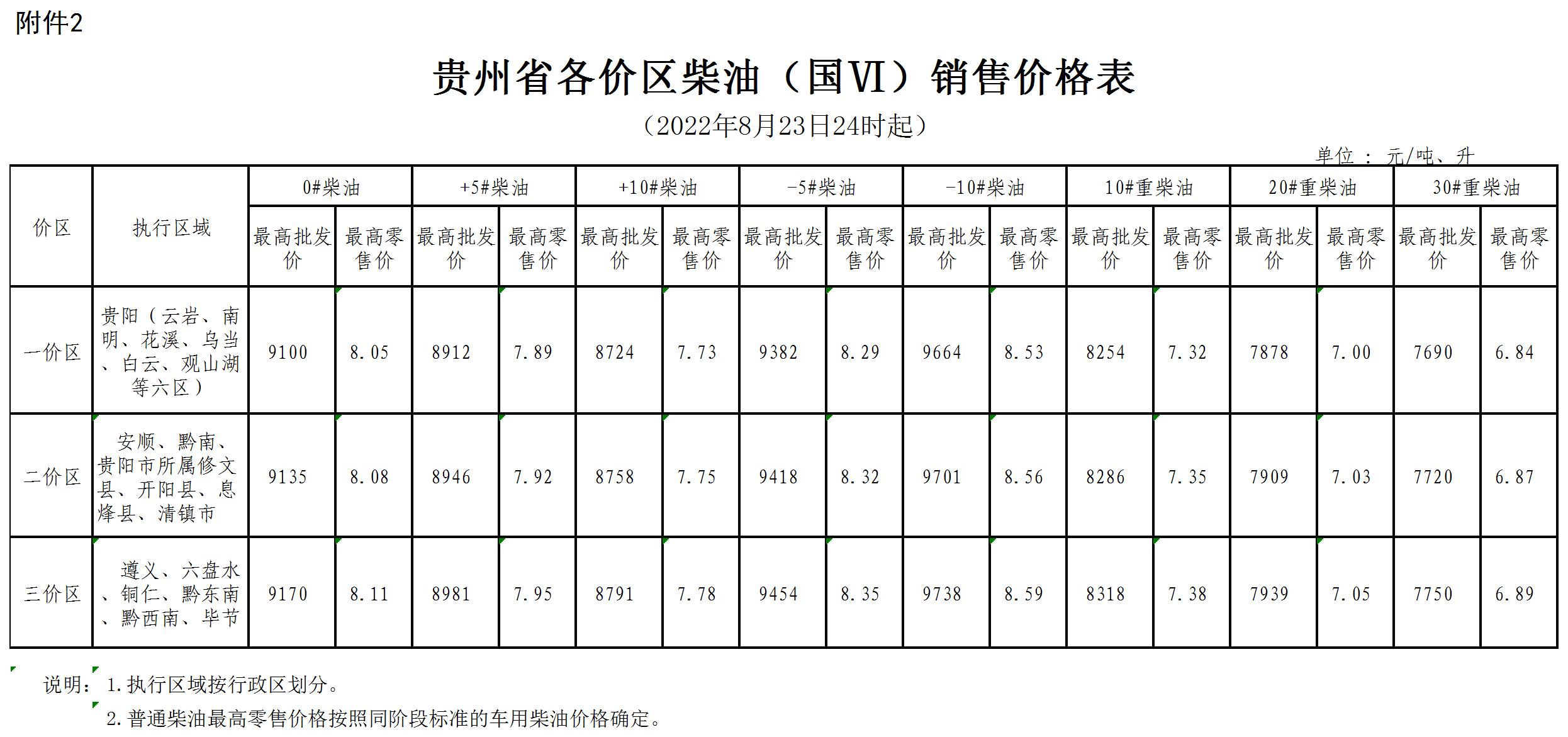 根据国家成品油价格形成机制,国家发展改革委决定自2022年8月23日24时起下调国内成品油价格。按照国家相关调整要求,我省89#汽油(国VIA)、0#柴油价格每吨在现行标准基础上分别降低205元和200元,具体价格可由各经营企业在不超过最高批发、零售价格的前提下确定。调整后各油品具体最高价格见附件。