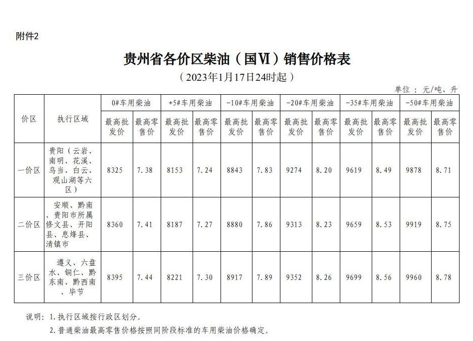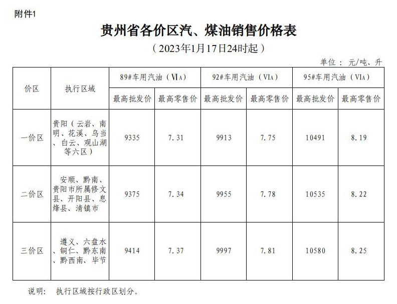 根据国家成品油价格形成机制,国家发展改革委决定自2023年1月17日24时起下调国内成品油价格。按照国家调整要求和相关规定,我省89#汽油(国VIA)、0#柴油价格每吨在现行标准基础上分别降低205元和195元,具体价格可由各经营企业在不超过最高批发、零售价格的前提下确定。调整后各油品最高价格见附件。