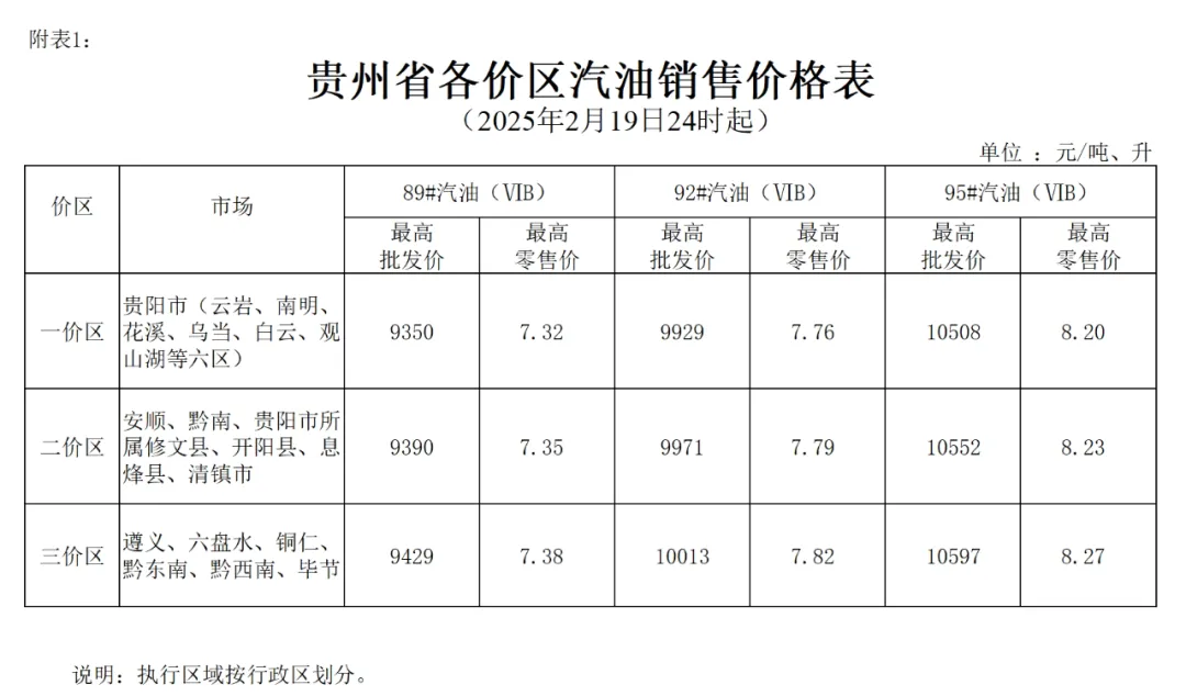 附件:1.贵州省各价区汽油销售价格表