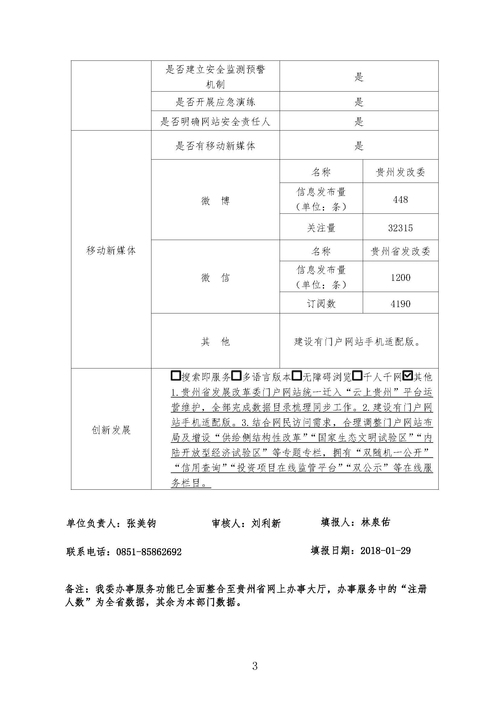 贵州省发展和改革委员会政府网站工作2017年度报表