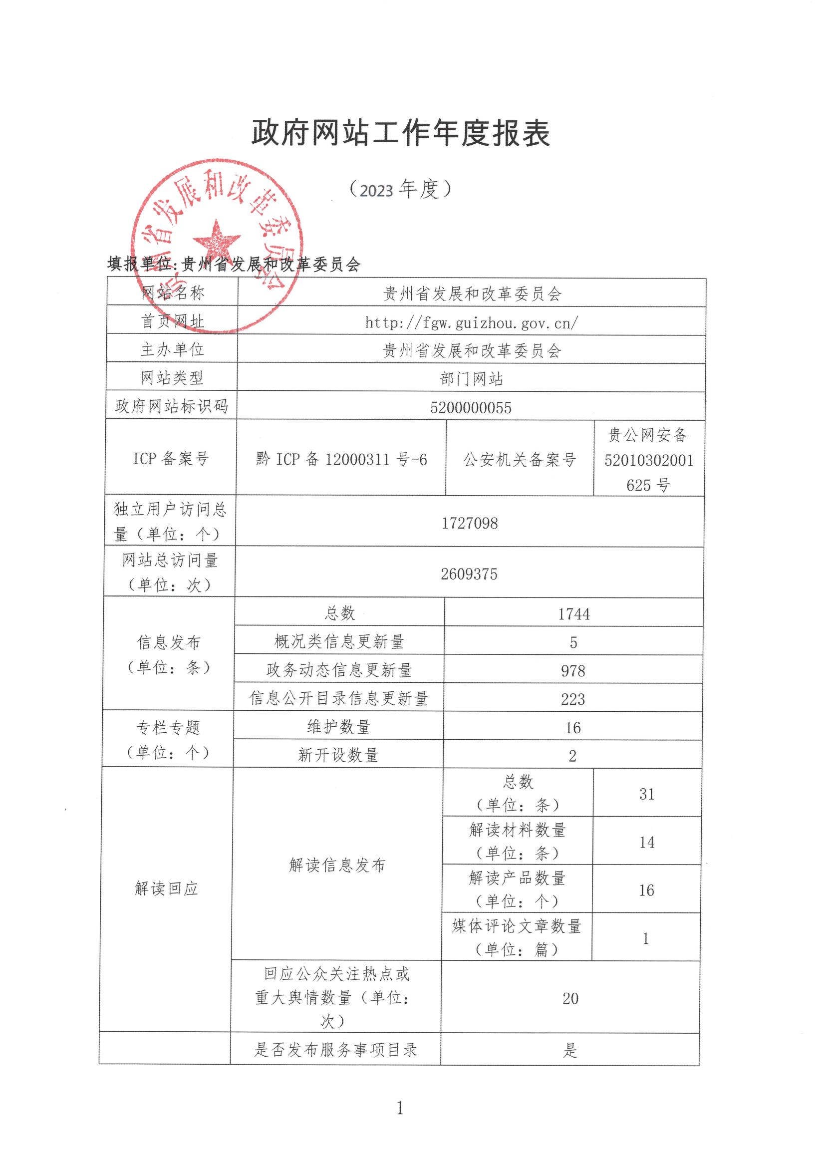附件:贵州省发展和改革委员会政府网站工作2023年度报表
