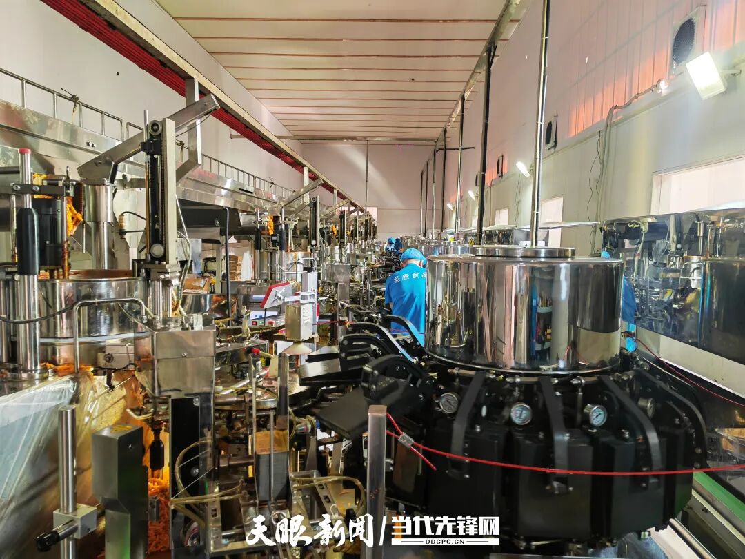 在安顺市平坝区夏云工业园区贵州益康食品有限公司加工厂房内,3套生产设备、12台包装机昼夜运转,50余名工人轮班工作全力抢抓时间,满负荷生产完成订单任务。