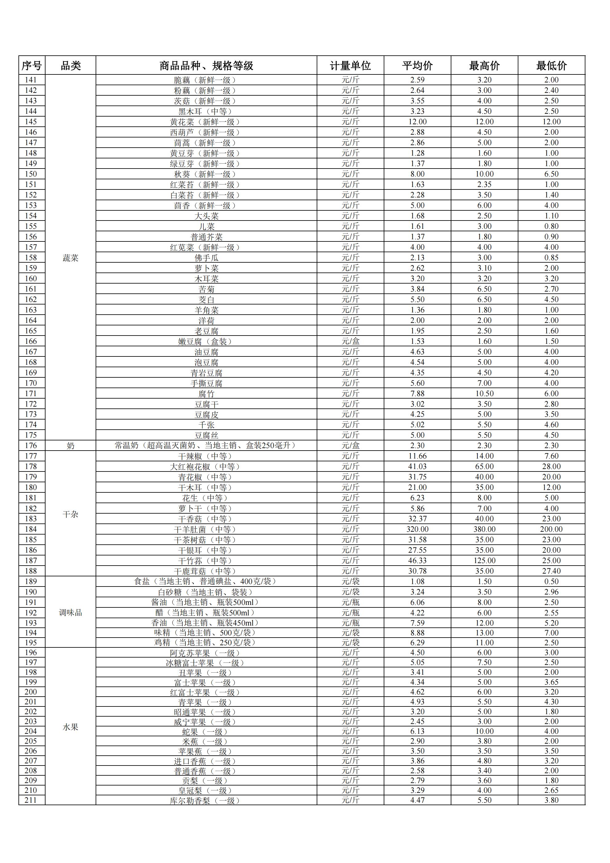 您当前所在的位置:首页>政务公开>信息公开目录>重点领域信息>价费服务>主要粮油副食品批发价格监测