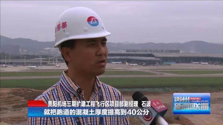 贵阳机场三期扩建工程飞行区项目部副经理 石波:4000米跑道从二线城市来讲的话,实际上是算比较超前的,提高了一个等级。原来我们贵阳机场的跑道面积厚度就是36公分,那么为了接收大型飞机,就把跑道的混凝土厚度提高到40公分。