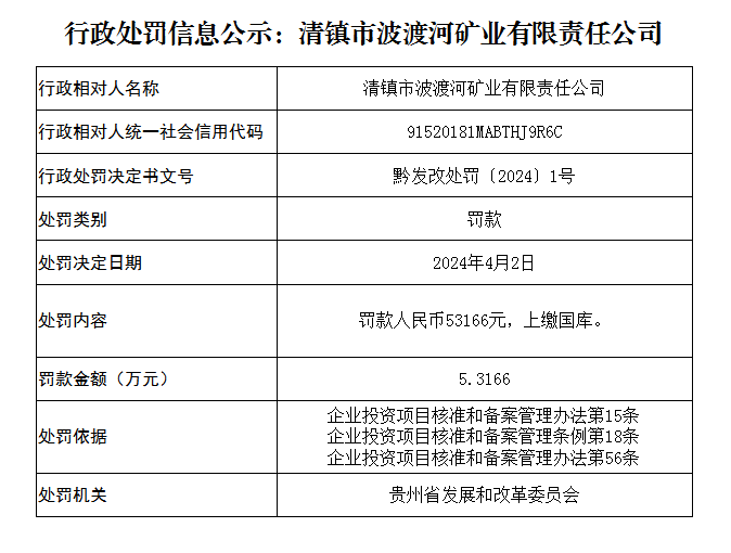 行政处罚信息公示(黔发改处罚〔2024〕1号)