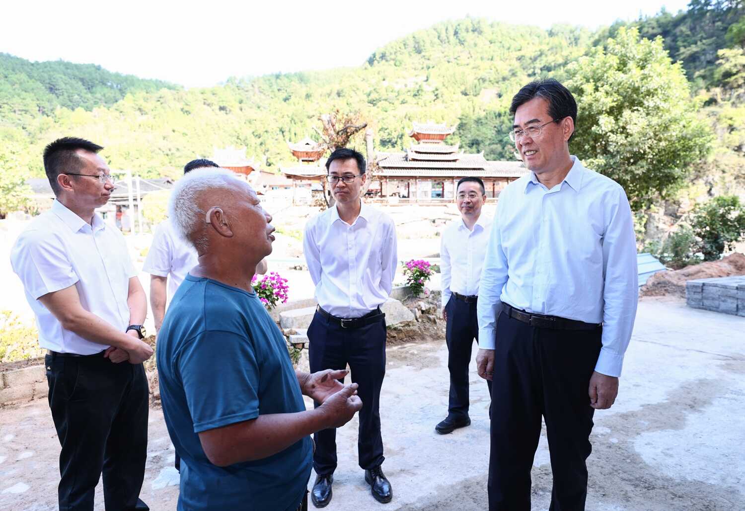 图为李炳军在丹寨县南皋乡看望慰问受灾群众。