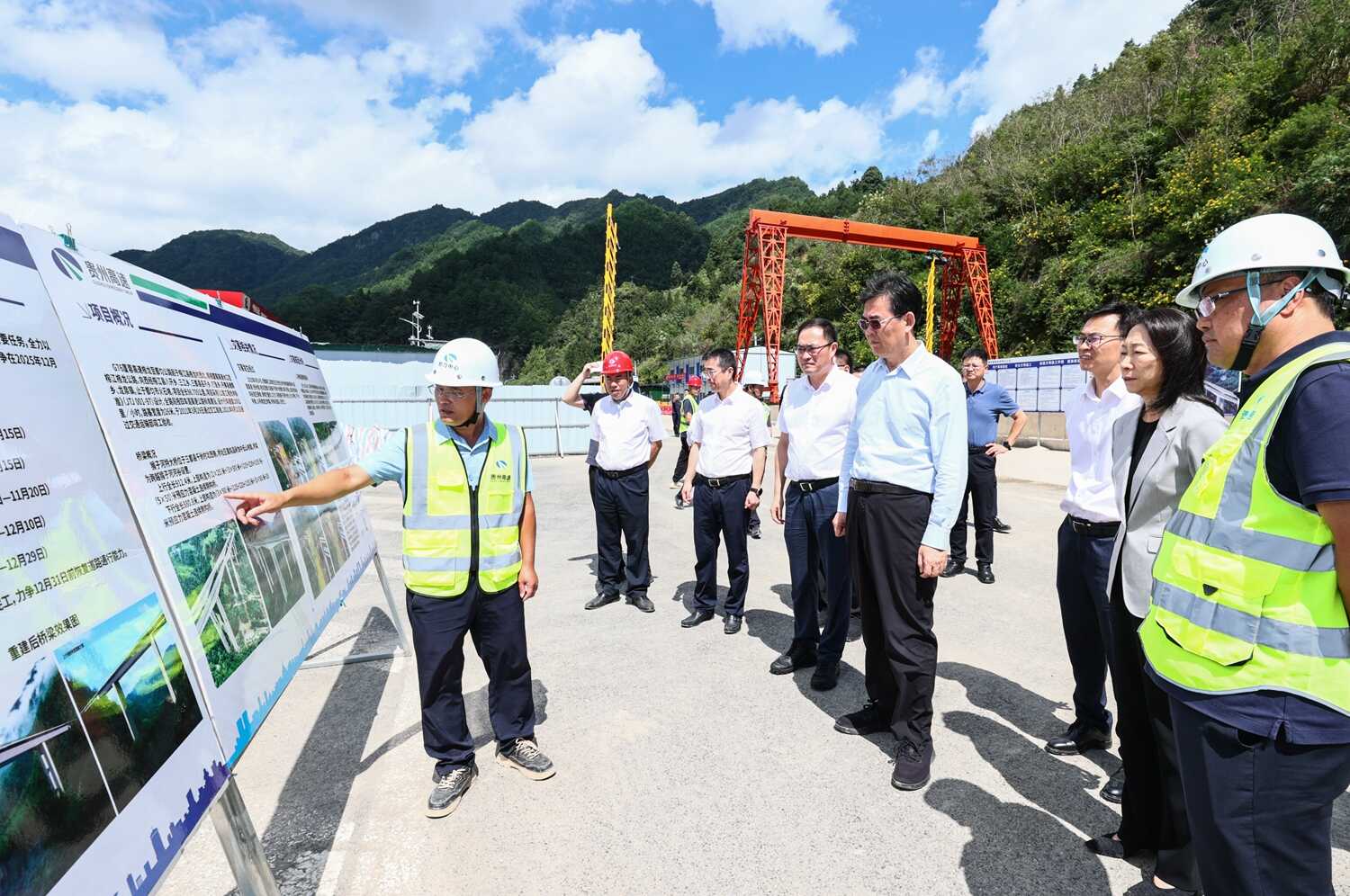图为李炳军在三都自治县猴子河特大桥引桥重建工程现场调研。