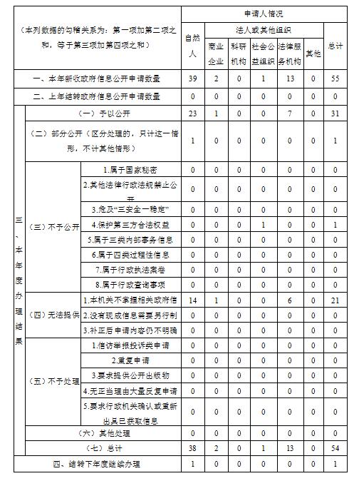 (二)规范依申请公开管理,提高程序化法治化水平。新《条例》颁布实施以来,我委修订完善了依申请公开说明,进一步明确了申请公开流程、收费情况、注意事项等,为公众申请公开政府信息提供科学依据。按照收件、登记、分办、答复、存档五步工作法统筹抓好依申请公开各项工作,2019年依法及时规范办理各类依申请公开政府信息55件,其中书面申请29件、网络申请21件、当面申请5件,办结54件、在办1件,不属于本机关掌握范围21件,不予公开1件、无法识别1件、补正7件。主动公布2019年一、二、三、四季度依申请公开政府信息办件分析报告。