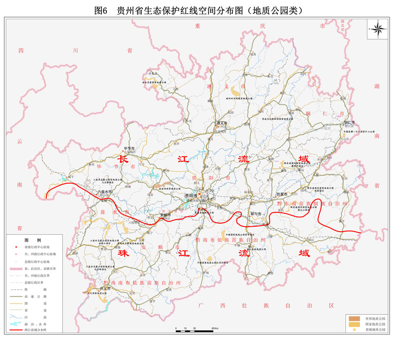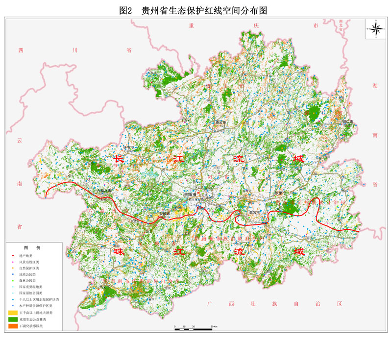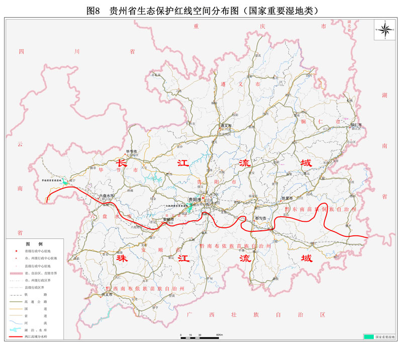 ——贵阳市。贵阳市生态保护红线包括风景名胜区、地质公园、森林公园、国家重要湿地、国家湿地公园、千人以上集中式饮用水源保护区、五千亩以上耕地大坝永久基本农田、重要生态公益林、石漠化敏感区8种类型,面积2506.39平方公里,占贵阳市国土面积的31.20%,占全省国土总面积的1.42%。