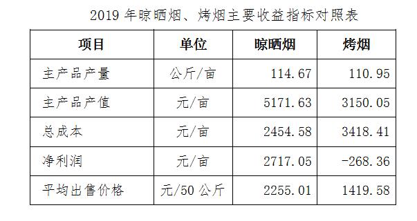 二、晾晒烟产量、价格均高于烤烟,总成本低于烤烟,收益优于烤烟。