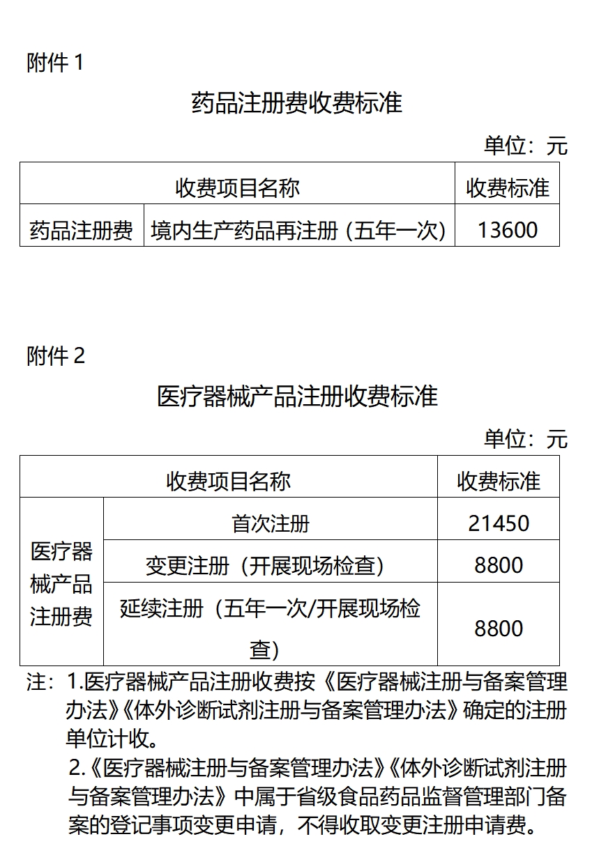 关于调整药品和医疗器械产品注册费收费事宜的通知